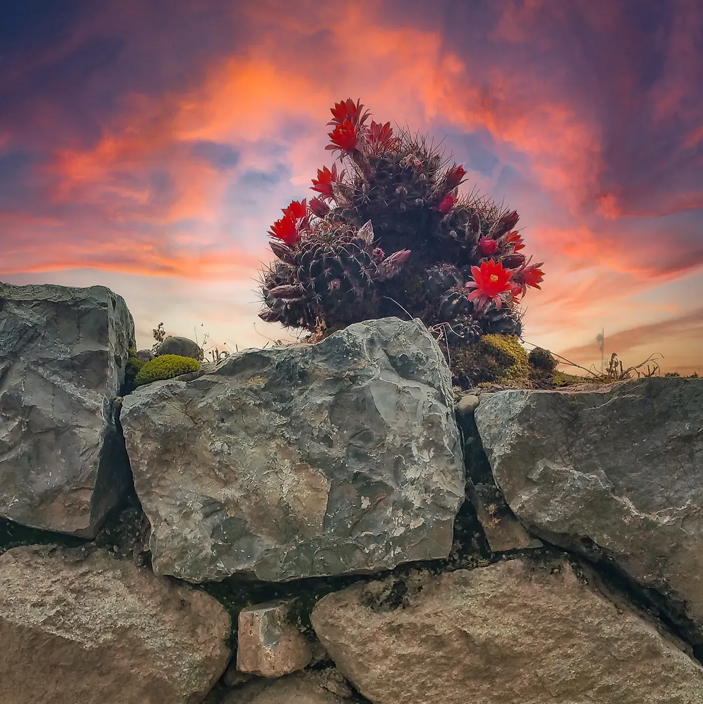 Belki güzel bir bahçenin duvarıydı, belki de bir ağılın taş duvarı. Belki kurumuş bir derede set idi, belki de yıkılmış bir evin yatak odasından kalan taş duvar parçası. Bunu ancak bu taş duvarı yapan ustalar ve o tarihte ve orada yaşayanlar bilebilir. O duvar artık yapılma amacına hizmet edemiyor ama doğa bu taş işçiliğine, bu emeğe saygısından olsa gerek, onu bu olağanüstü güzellikte bir kaktüs ile ödüllendirmiş adeta. Bununla da yetinmemiş, yüzyıllar içerisinde taşlarını tek tek sınırsız renk paletiyle boyayarak olağanüstü güzellikte eserlere dönüştürmüş. Bize düşen de bu olağanüstü renk cümbüşünden ilham alarak bu benzersiz renk ve dokularda dekoratif kültür taşları ve kaplama tuğlalar tasarlamak.